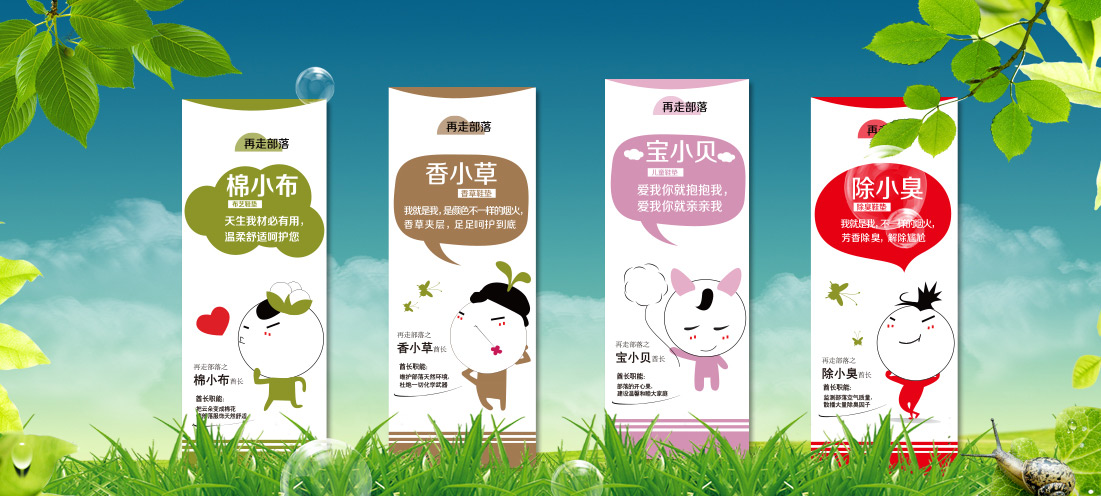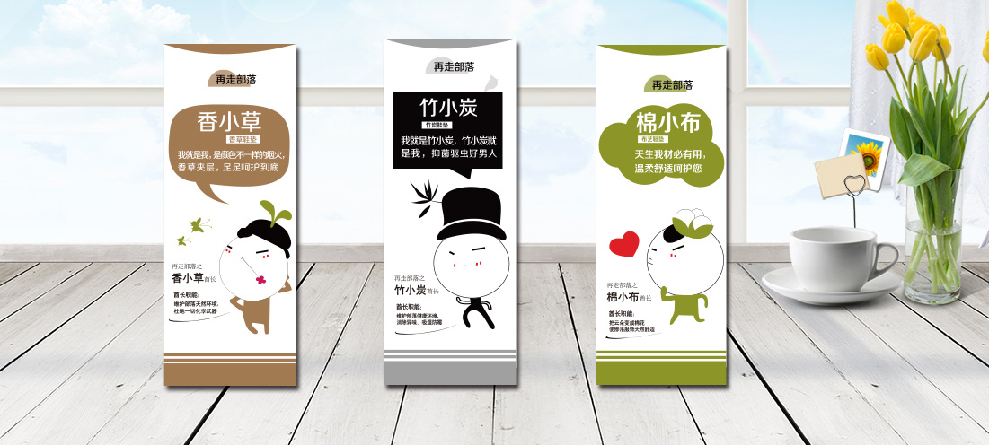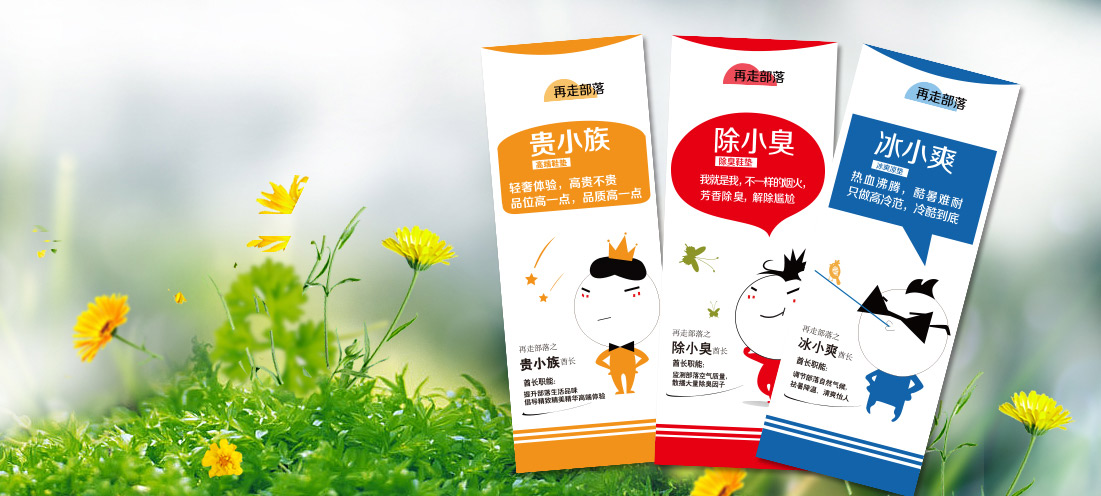 再走部落系列包装,客户要求区别于市场销售鞋垫包装。有特色,具有创意性。我们为其设计了8款不同的卡通形象,每款鞋垫都有相应职能的酋长保护,更配有个性标语以及温馨小建议。是再走部落对您的用心呵护。